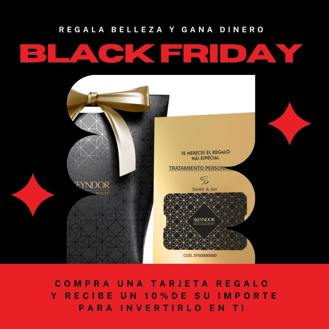 Durante la semana de Black Friday (24 de noviembre al 1 de diciembre), te regalamos un 10% del importe de la tarjeta que elijas para que lo gastes en productos o servicios de nuestro centro hasta el 30 de enero de 2026.